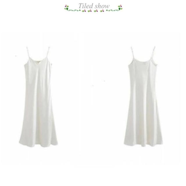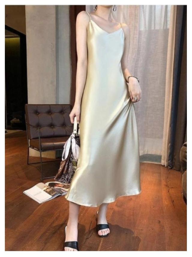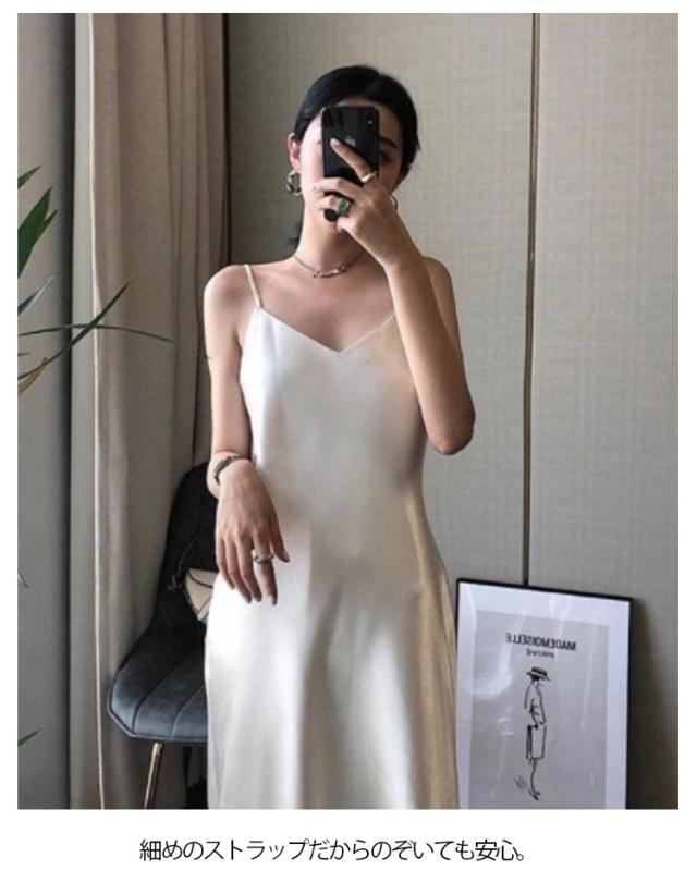 | 春夏のおしゃれスタイルに欠かせないキャミソールワンピース。 さらさらとした滑らかなサテン調素材で仕立てて、ストレスフリーのよい着心地です。 ふくらはぎも隠れるロング丈だから大人女子も着たくなる。 細めのストラップだからのぞいても安心。 1枚でサラッと着ていただいてアウターを羽織るなど、様々なコーディネートに使えるアイテムです。 | |
