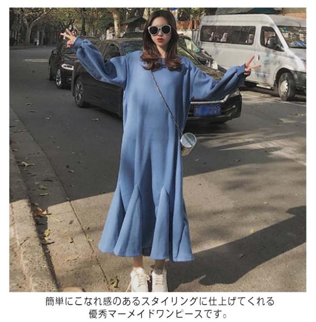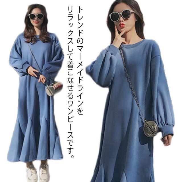 マーメイドワンピース パーカーワンピース レディース スウェット ワンピース ロングワンピース 長袖 丸首 ロング丈 マーメイド フレア ビッグシルエット ゆったり パーカー ワンピ