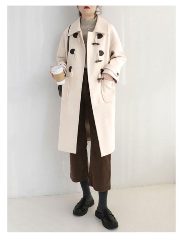 | 毎シーズン大好評のダッフルコートが今年も登場! ふんわりと広がりのあるキレイなAラインのシルエットが特徴的。 程よいゆとりがあり、幅広いサイズに対応、着丈もしっかりあるので、暖かく過ごしていただけます。 細身のパンツですっきりと合わせた着こなしはもちろん、ワイドパンツやロングスカートなどボリュームボトムスとも相性◎ 軽い着心地なのに裏キルティング付きでしっかり暖かく、シーズンムード高まるアイテムです。 | |