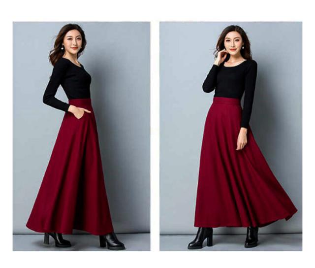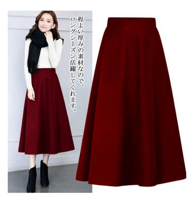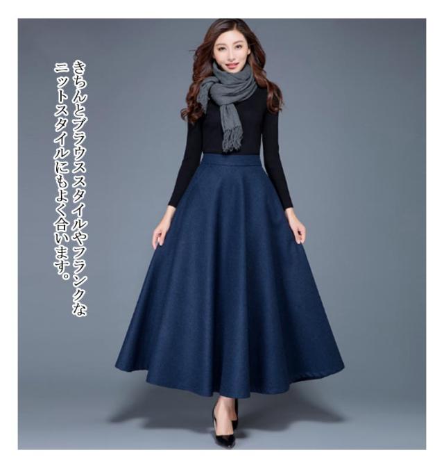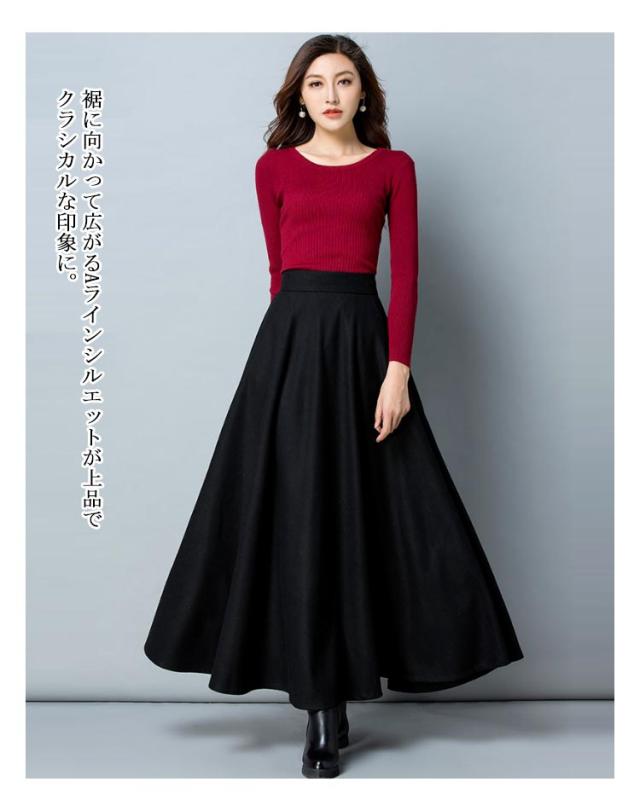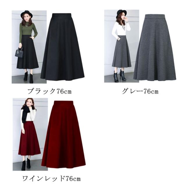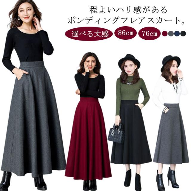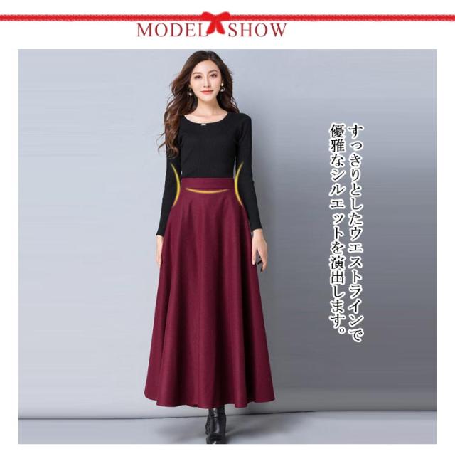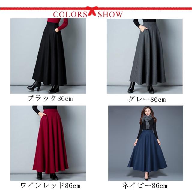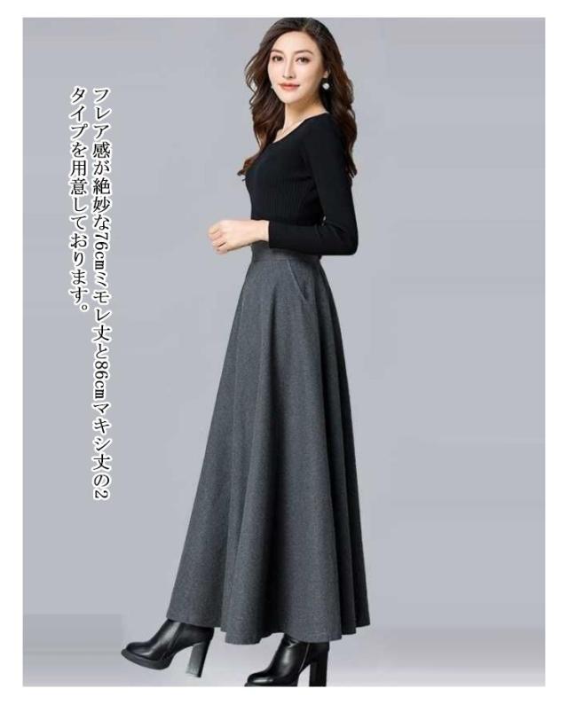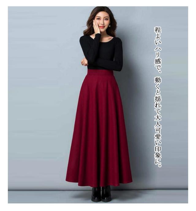 スカート レディース 秋冬 フレアスカート ボトムス Aライン フレア ロングスカート マキシ ハイウエスト 大きいサイズ ゆったり マキシスカート 無地 春 秋 冬 ウールライク 厚手 選べる丈感 86cm 76cm