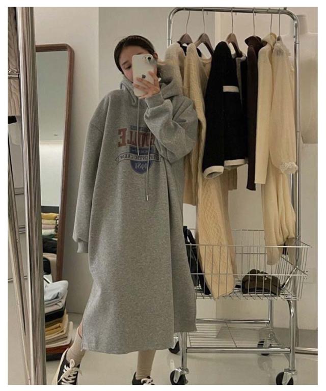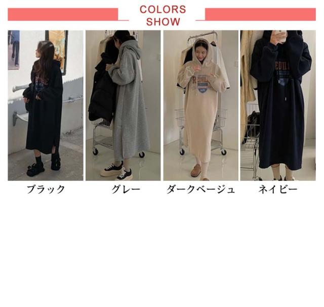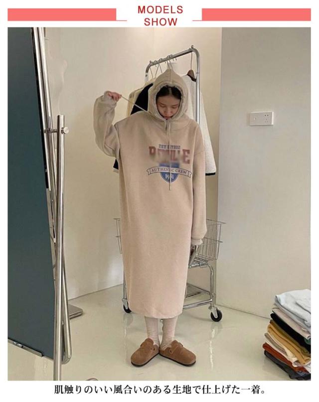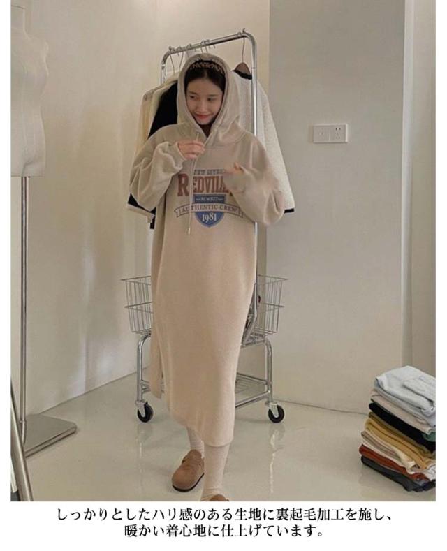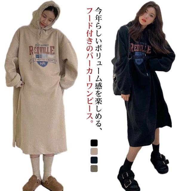 ワンピース 長袖 秋 冬 裏起毛 パーカーワンピース レディース ロング丈 スウェット フーディーワンピース 暖かい トレーナー 大きいサイズ ゆったり カジュアル ルームウェア 部屋着 楽ちん