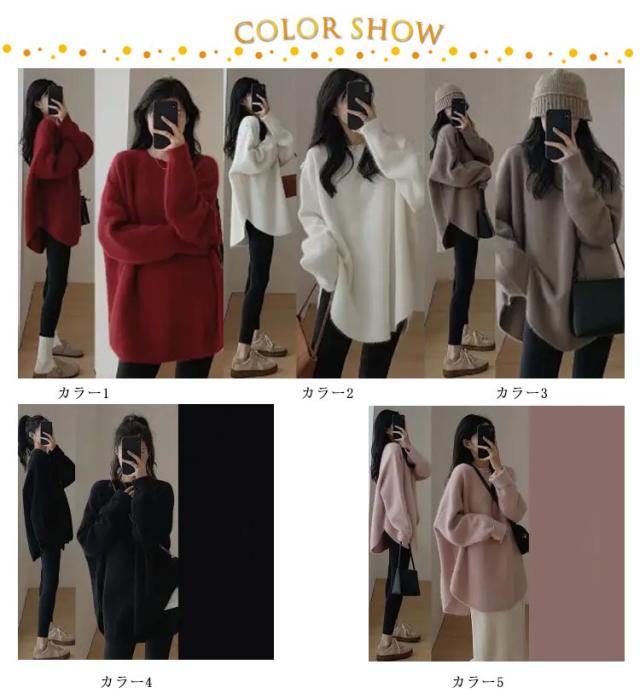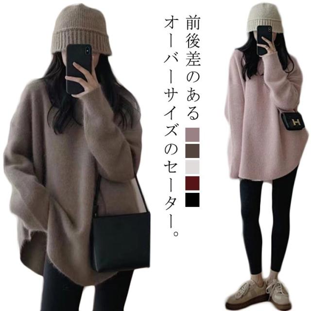 セーター レディース ニットセーター ラウンドネック 長袖 トップス ニットトップス ラウンド裾 前後差 サイドスリット ニット セーター ロング丈 防寒 おしゃれ 可愛い カジュアル 通勤 通学 オフィス 春 秋 冬 S M L XL 2XL