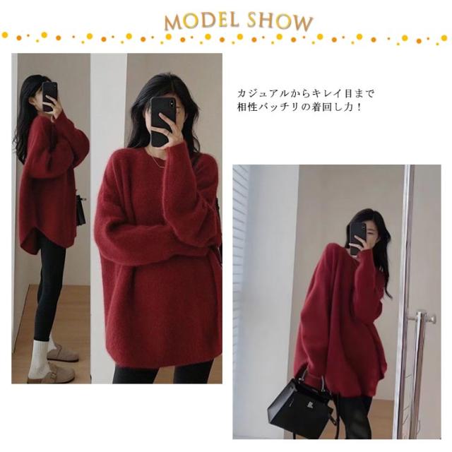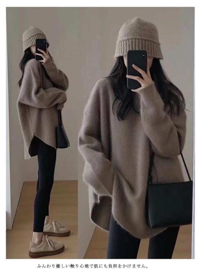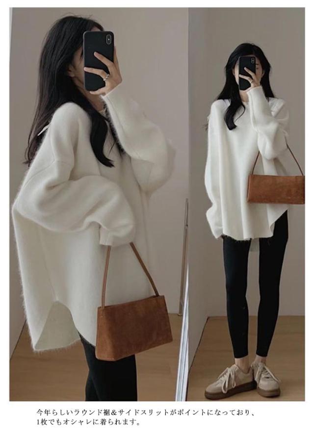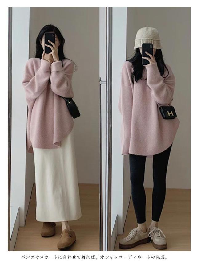 | 前後差のあるオーバーサイズのセーター。 ロング丈だからお尻も隠れて温かい&体型カバー! ふんわり優しい触り心地で肌にも負担をかけません。 パンツやスカートに合わせて着れば、オシャレコーディネートの完成。 今年らしいラウンド裾&サイドスリットがポイントになっており、1枚でもオシャレに着られます。 カジュアルからキレイ目まで相性バッチリの着回し力! | |