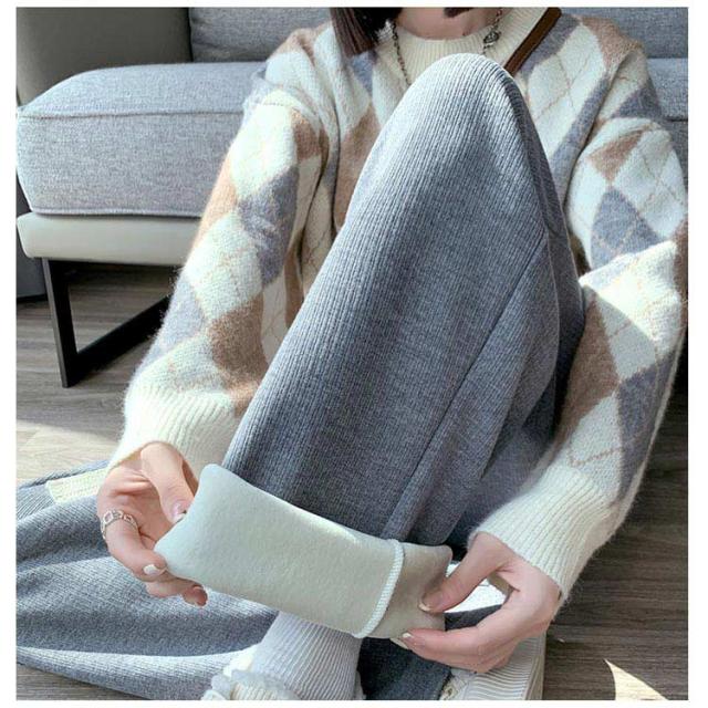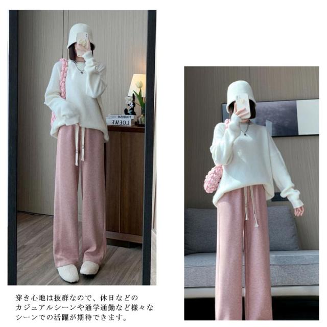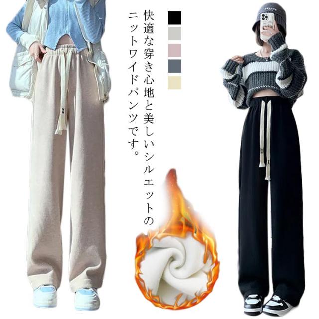 裏起毛 ワイドパンツ レディース ニットパンツ ロング パンツ カジュアルパンツ ストレートパンツ ロングパンツ 長ズボン 美脚 ウェストゴム ボトムス 大人 脚長 体型カバー ゆったり 着回し 落ち感 春 秋 冬 S M L XL
