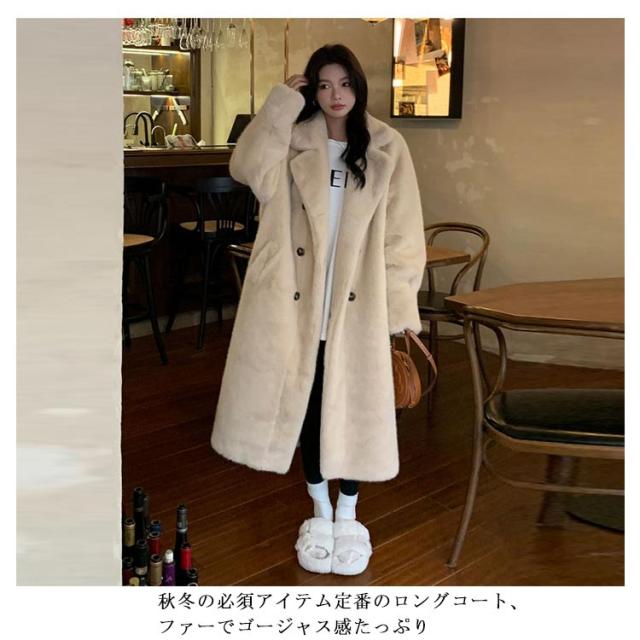 フェイクファーコート レディース ロングコート チェスターコート トレンチコート 羽織 ボリューム アウター フェイクファー エコファー コート 長袖 ふわふわ 暖か 防寒 冬 シンプル 無地 送料無料