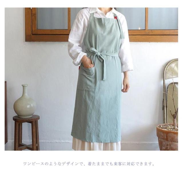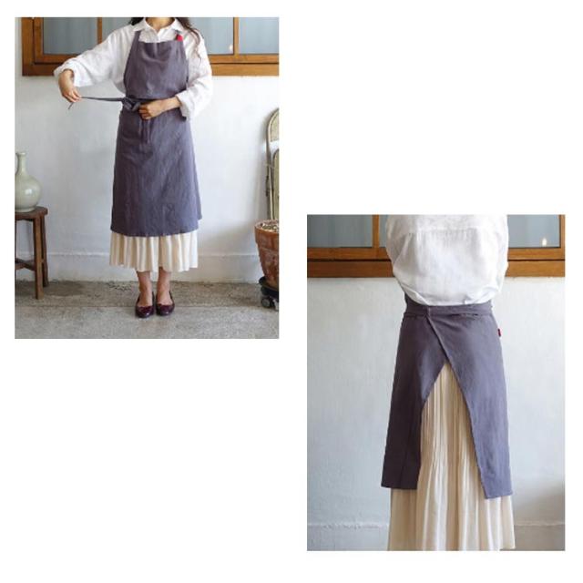 | シンプルでお洒落なデザイン、ワンピースの様なエプロンが登場しました! 大容量のポケットがあり、機能性を合わせ持って、毎日が楽しい。 ウエスト部分からギャザーが入っているので、きれいなAラインをキープ。 ワンピースのようなデザインで、着たままでも来客に対応できます。 | |