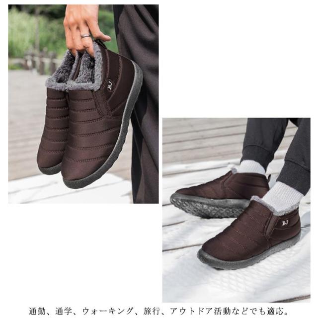 | 足を入れた瞬間から体感の温かいスリッポンは一度履くと手放せません。 内側には足先までふかふかと触り心地のよいフリースのような素材を起用し、足を優しく包み込むので寒い外気から足を守ります。 ソフトなフィット感で快適性に優れており、さらに軽量のため長時間履き続けていても足を疲れさせません。 防水素材なので、水の染み込むことをガッチリ防ぐことができ、水分の多い雪にも強く、積雪や降雪時靴内の爽やかを保ち、湿気から逃れ。 アウトソールは滑り止め機能搭載で、滑りにくいから安心して歩きます。 シンプルなデザインと落ち着いたカラーはどんなファッションにも取り入れやすい。 通勤、通学、ウォーキング、旅行、アウトドア活動などでも適応。 | |