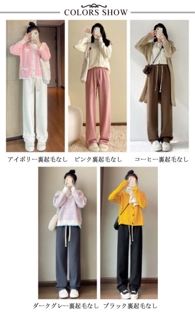 | 色 | ピンク裏起毛 ピンク裏起毛なし ブラック裏起毛 ブラック裏起毛なし アイボリー裏起毛 アイボリー裏起毛なし ダークグレー裏起毛 ダークグレー裏起毛なし コーヒー裏起毛 コーヒー裏起毛なし |