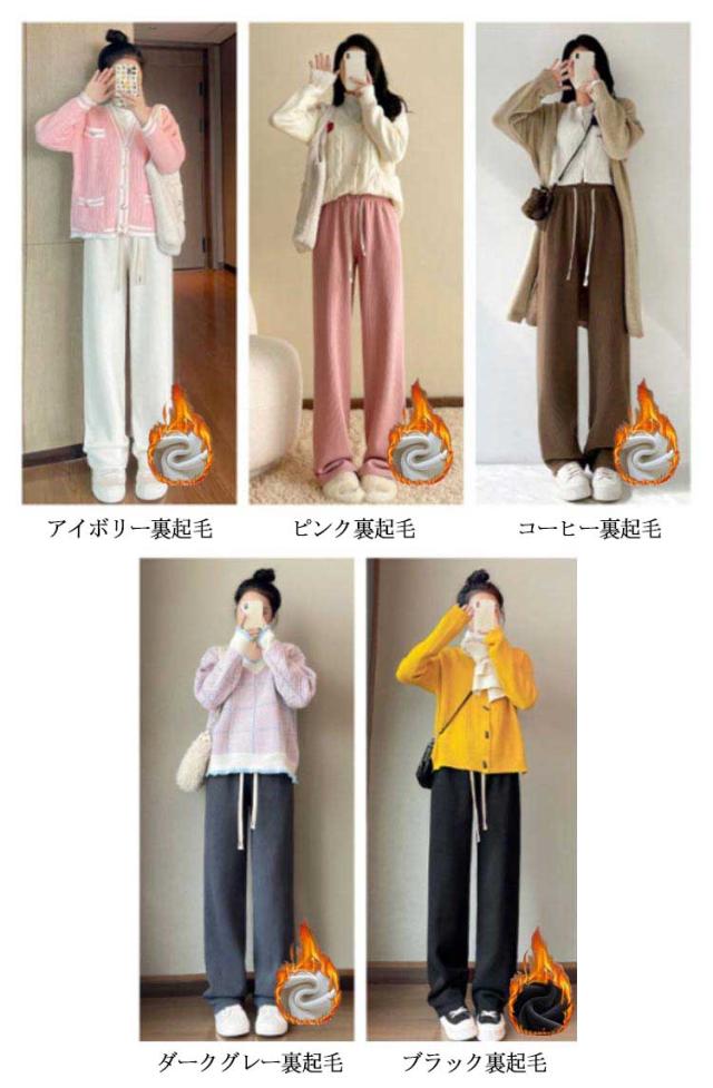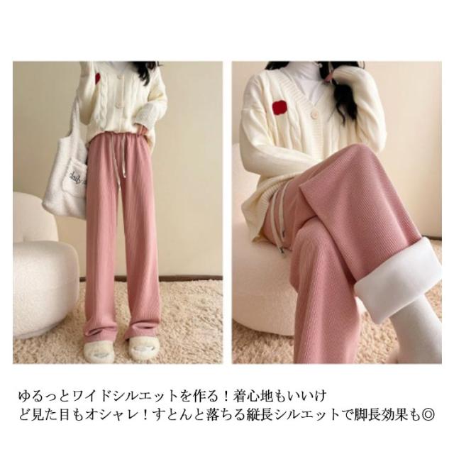 ワイドパンツ レディース 春秋冬 裏起毛 コーデュロイ リブ パンツ イージーパンツ あったかい 防寒 低身長 高身長 ワイド ゆったり 体型カバー きれいめ 大きいサイズ カジュアル 無地 通勤 通学 おしゃれ 流行 大人可愛い ウエストゴム 送料無料