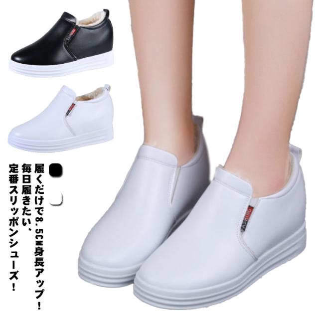厚底 スリッポン 防寒靴 裏起毛 スニーカー インヒール シークレットソール ウェッジソール レディース 靴 裏起毛スリッポン 厚底スリッポン ボア付き カジュアル シューズ