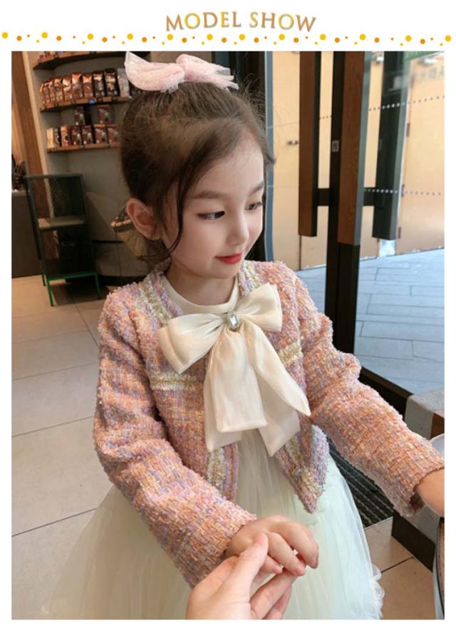 | 清楚で華やかな女の子スーツワンピース。 上品セレブなオーラを放つフォーマルウェア、入学式や七五三、結婚式や発表会などあらゆるセレモニーイベントにご使用可能。 上品な印象ながらも子どもらしい大きめリボンが魅力。 余計なアクセサリーや飾りが必要なく、セットアップを着るだけでフォーマルシーンに最適。 | |