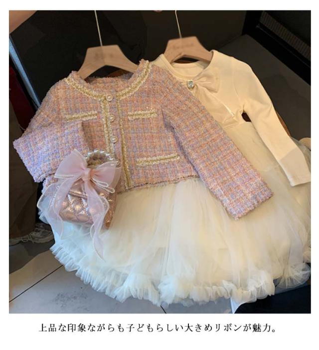ツイード アンサンブル+ワンピース 2点セット 140 フォーマル 女の子 入学式スーツ キッズ 小学生 ジャケット 100 七五三 入学式 卒業式 スーツ セットアップ 子供服 入園式 卒園式 発表会 お誕生日