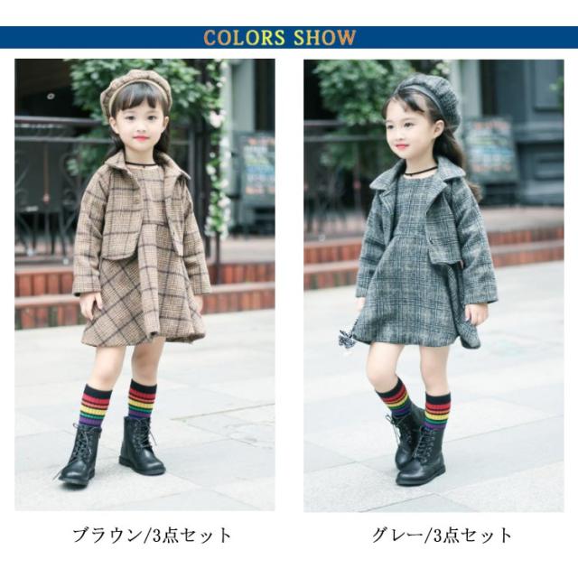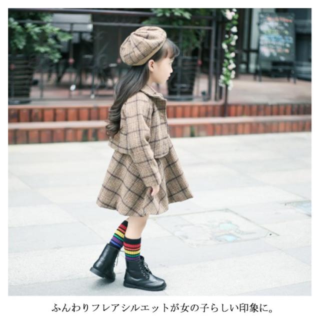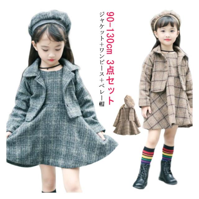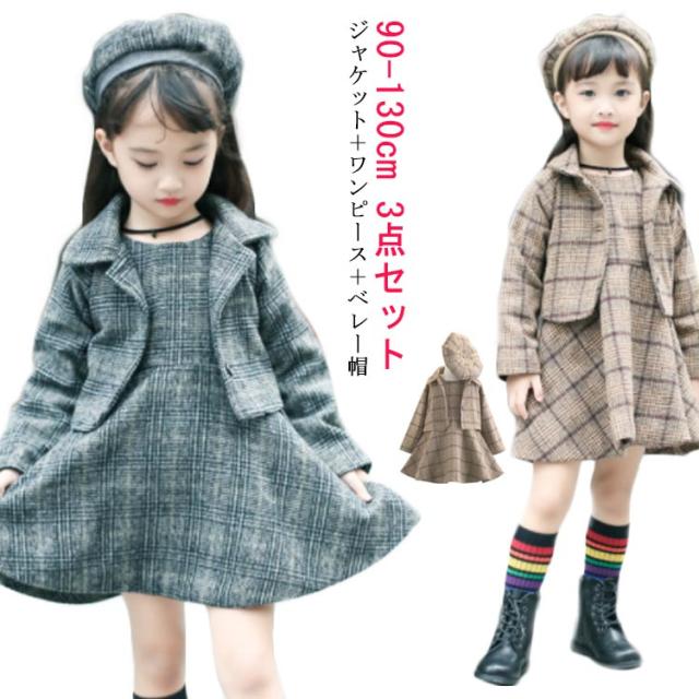 入学式スーツ 女の子 子供服 卒園式 ワンピース ボレロ セットアップ ジャケット アンサンブル ベレー帽 チェック柄 秋 冬 服 厚手 パーティー 結婚式 フォーマルスーツ 発表会 お宮参り 七五三 90 100 110 120 130cm