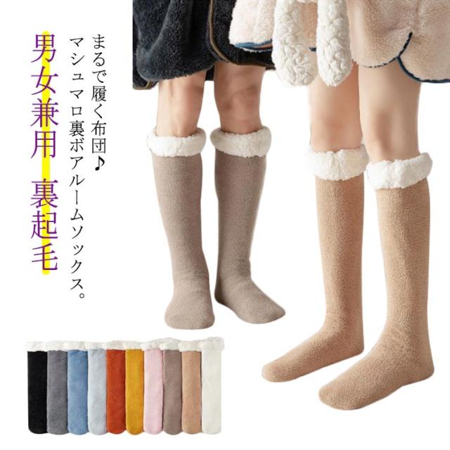 ルームソックス 極厚 裏ボア 履く毛布 ハイソックス ムートン 男女兼用 裏起毛 靴下 滑り止め フロアソックス 冬 送料無料 レディース メンズ ムートンソックス ハイ 対策 防寒 ふかふか