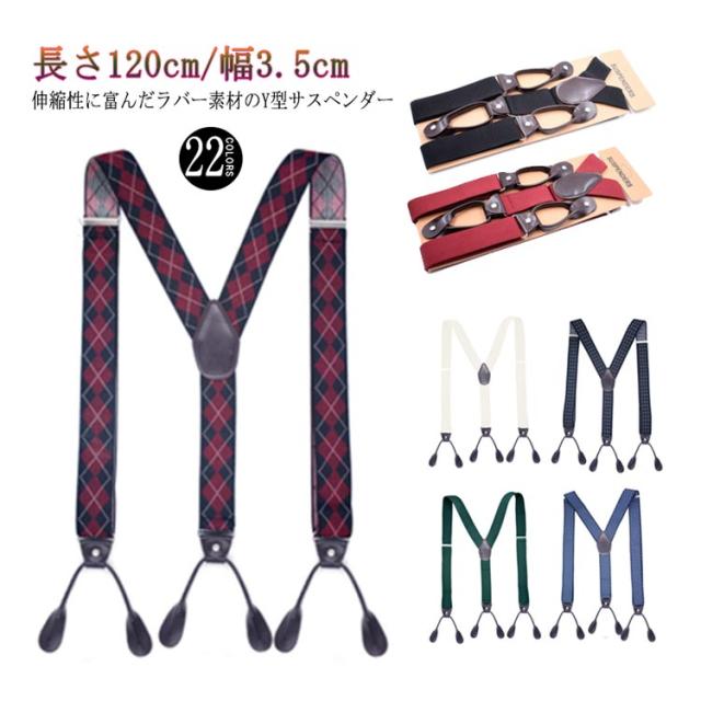 選べる22色 Y型サスペンダー 35mm 長さ120cm チェコ軍 Y型サスペンダー メンズ レディース 男女兼用 調節可能 結婚式 カジュアル おしゃれ 錆びない シンプル ユニセックス