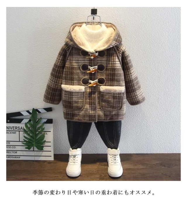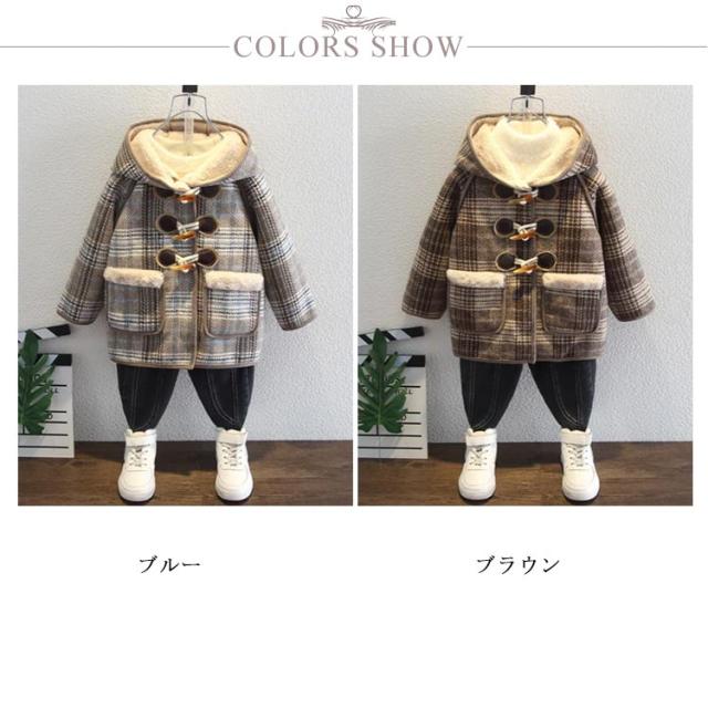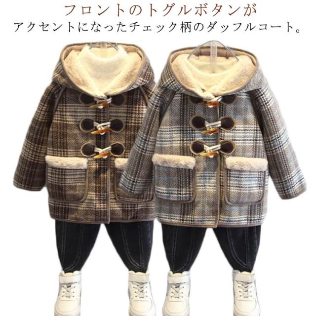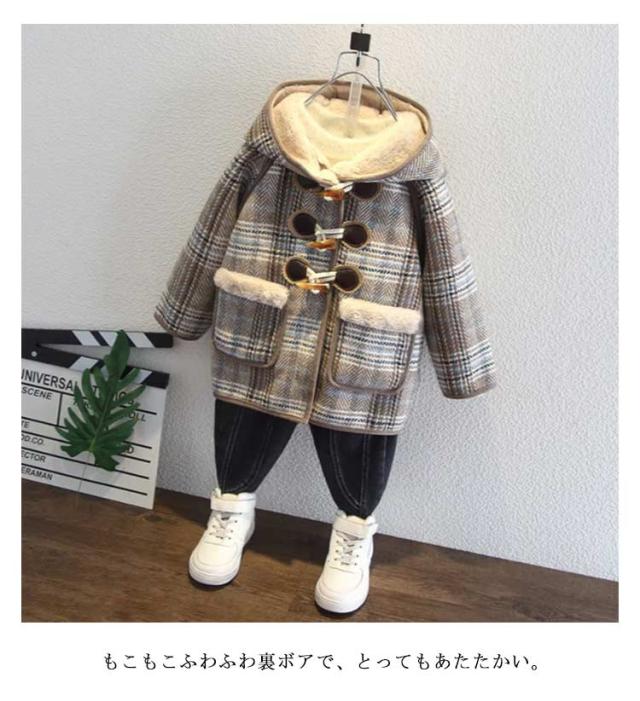 ダッフルコート キッズ 裏起毛 裏ボア アウター チェック柄 コート フード付き 長袖 厚手 冬コート 秋冬 防寒着 可愛い おしゃれ カジュアル 暖かい 防寒 子ども服 こども 子供服 女の子 男の子 ジャケット ジュニア 90 100 110 120 130 140 送料無料