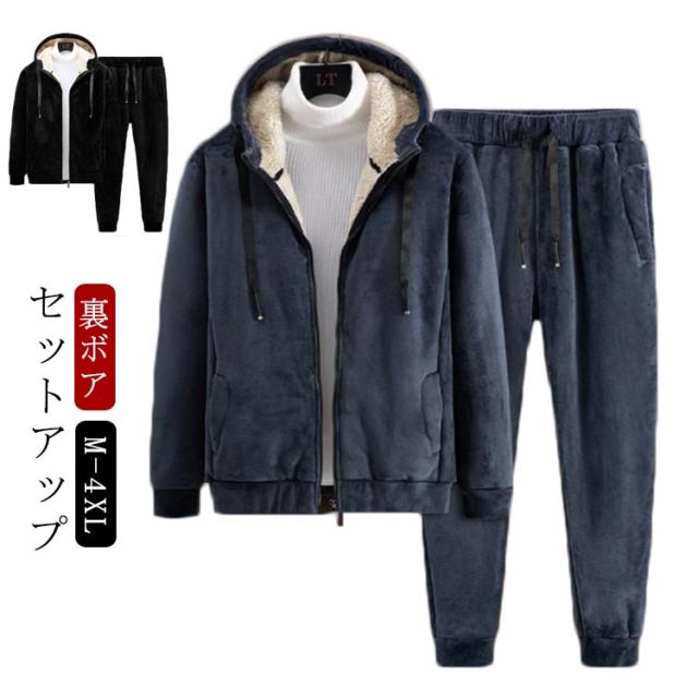 パーカー メンズ セットアップ メンズ フード付き ジャージ 裏ボア 上下セット スウェット 上下セットアップ 裏起毛 長袖 男性 パーカー ジップアップ 厚手 スウェット スポーツウェア 暖かい 防寒 秋冬 お洒落 送料無料 大きいサイズ