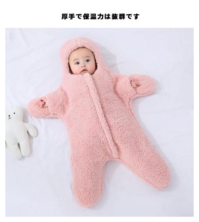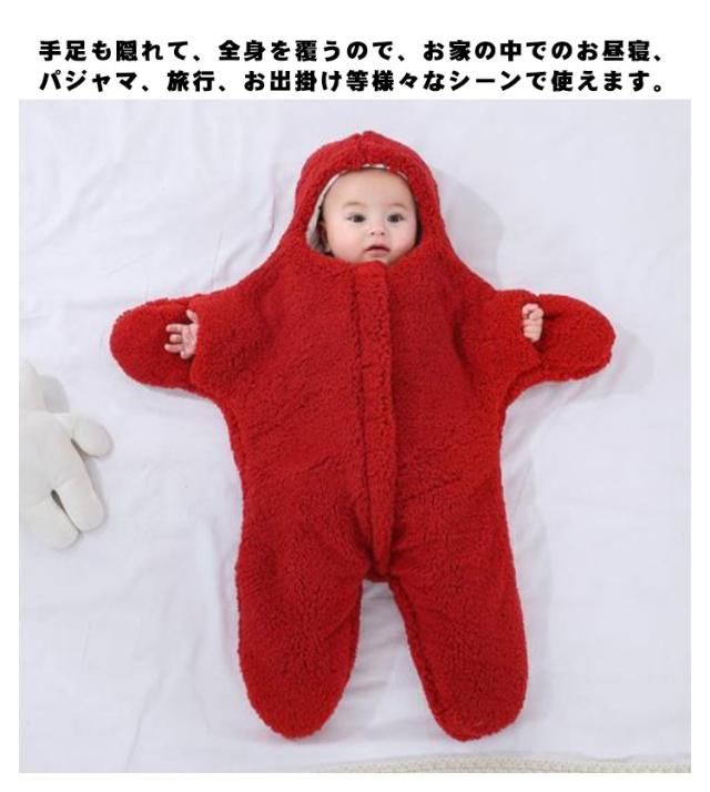 | ふわふわモコモコ♪あったかおくるみ。 厚手で保温力は抜群です。 赤ちゃんの足を入れて、シッパーをあげるだけの簡単着脱! 手足も隠れて、全身を覆うので、 お家の中でのお昼寝、パジャマ、旅行、お出掛け等様々なシーンで使えます。 生まれたての赤ちゃんへ、出産祝いギフトにおすすめ! | |