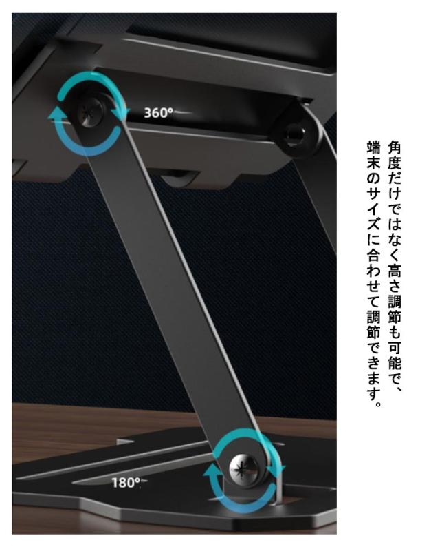 iPad スタンド タブレットスタンド 折りたたみ スタンド スマホスタンド 角度調節 高さ調整 合金 放熱性 安定性抜群 滑り止め テレワーク ノートPC ホルダー 在宅勤務 姿勢改善 腰痛 猫背解消