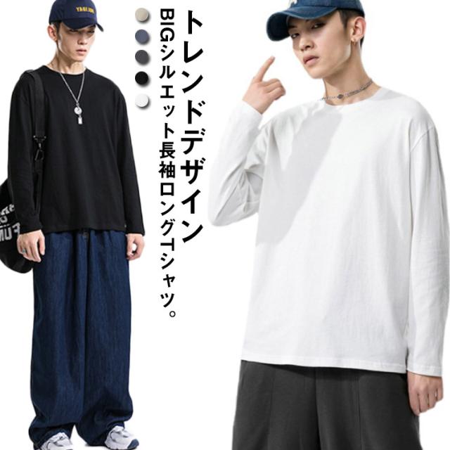 送料無料 Tシャツ メンズ ロングTシャツ ラウンドネック 長袖 ビッグシルエット ドロップショルダー ロング丈 無地Tシャツ ゆったり ゆるTシャツ シンプル 着回せる プルオーバー トップス おしゃれ カジュアル 男女兼用 ユニセックス