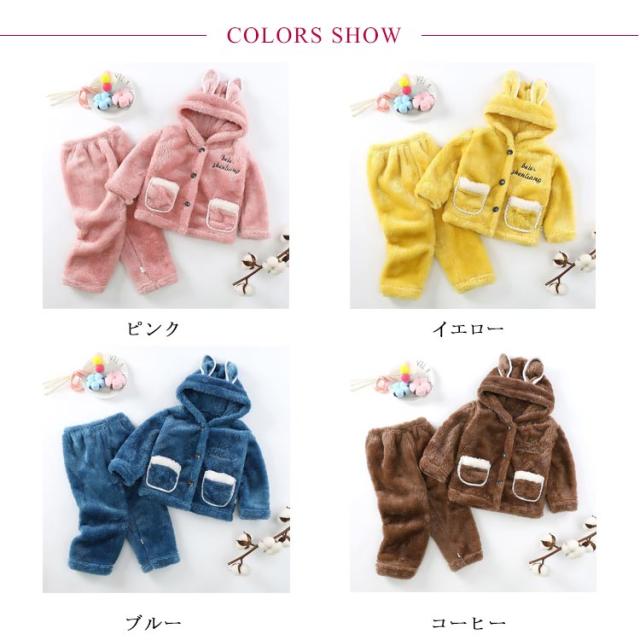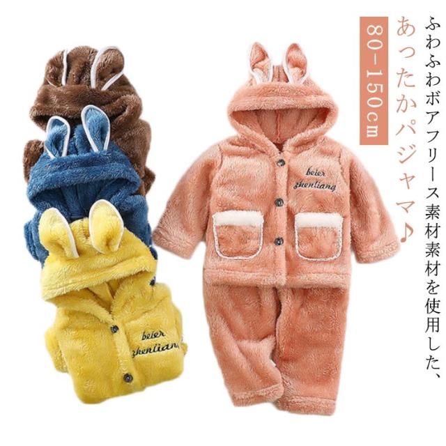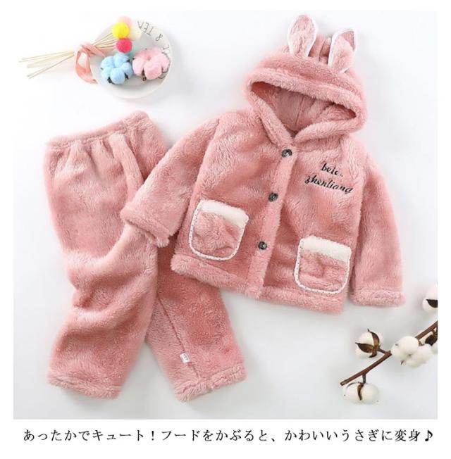 フリースパジャマ キッズパジャマ 上下セット ルームウェア 子供パジャマ 冬 長袖 部屋着 あったか ふわふわ もこもこ ボアフリース 女の子 男の子 子供用 ナイトウェア うさぎ 兎 かわいい 子ども服 誕生日 プレゼント ギフト 送料無料 80 90 100 110 120 130 140 150