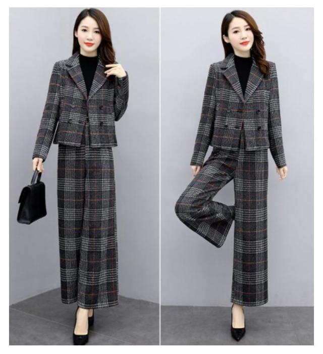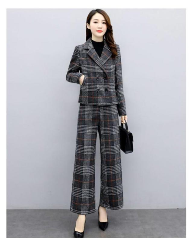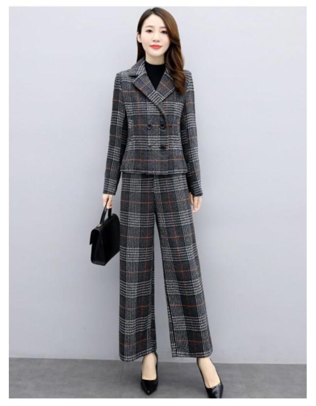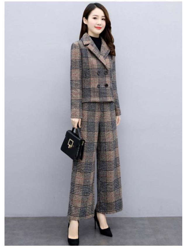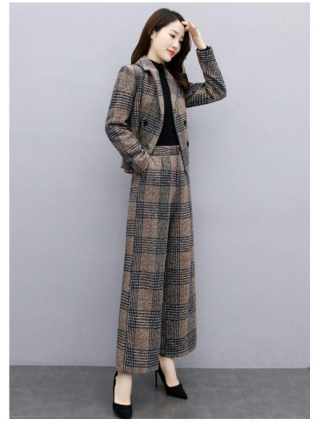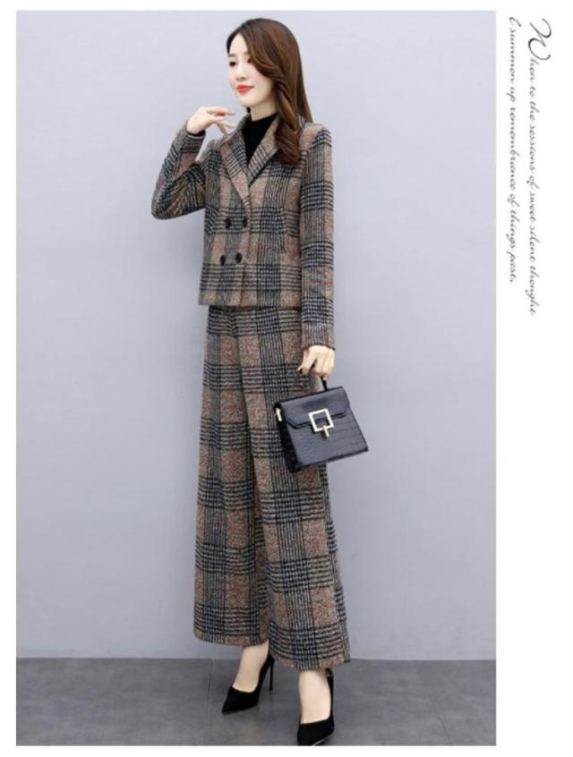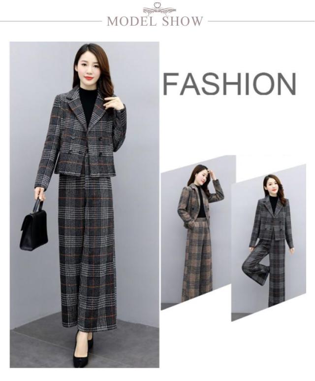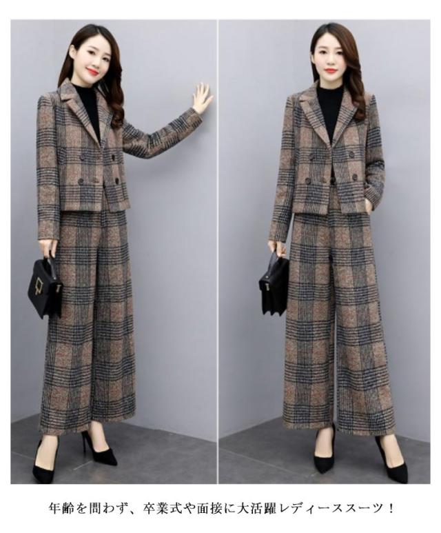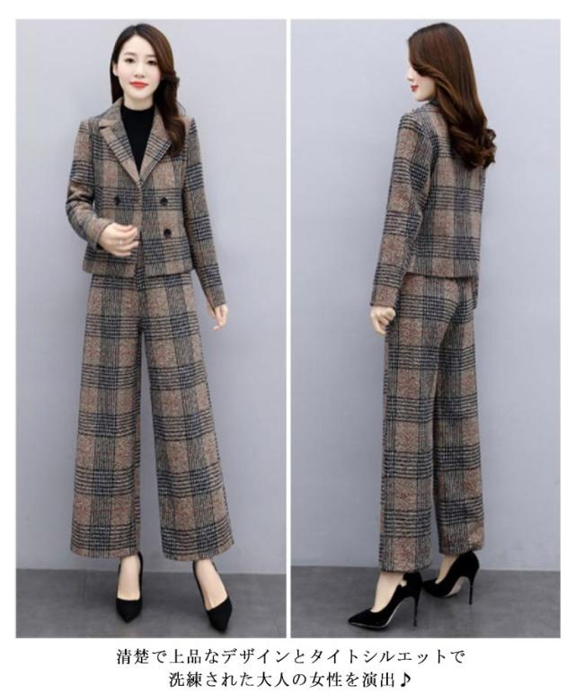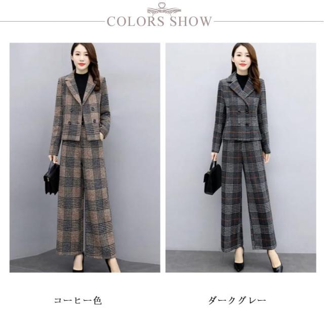 送料無料 セットアップ レディース パンツスーツ パンツドレス フォマール コート+ワイドパンツ 上下セット ガウチョパンツ 秋冬 長袖 無地 ゆったり カジュアル 母親 OL 女性 オフィス ビジネス 通勤 お呼ばれ 結婚式 二次会 着痩せ チェック柄