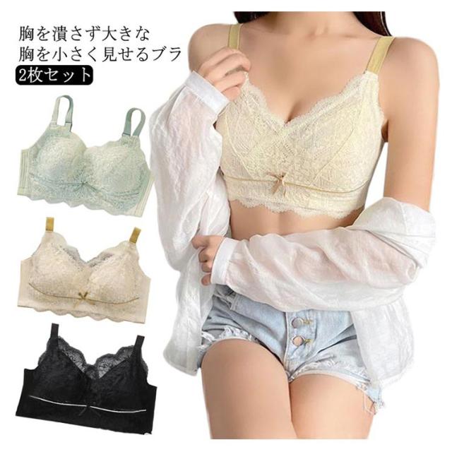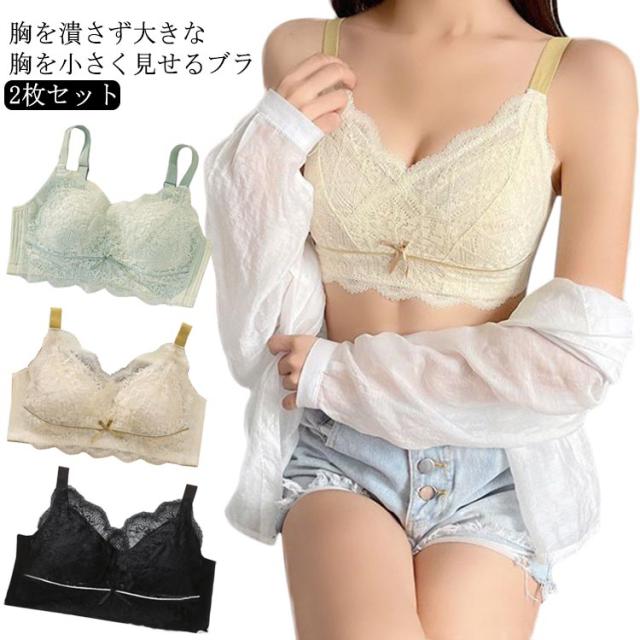【2枚セット】胸を小さく見せるブラ ノンワイヤー ブラジャー 胸が小さく見えるブラ 小さく見せるブラジャー 薄い 送料無料 大きいサイズ 着痩 補正ブラ インナー 揺れない ワイヤレスブラ 脇高