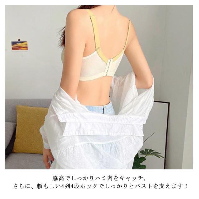 | 薄型立体カップでバストのボリュームが分散され、バストラインをスッキリ補正。 胸より小さく見えるようにカップの膨らみは極限まで抑えながら、美しいバストラインを実現。 バスト全体をすっぽり覆い、広い範囲でホールドするので、下垂の原因となるユレも抑えます 脇高でしっかりハミ肉をキャッチ。さらに、頼もしい4列4段ホックでしっかりとバストを支えます! U字のバックスタイルで肩への負担も軽減し、後ろ姿もすっきり! | |