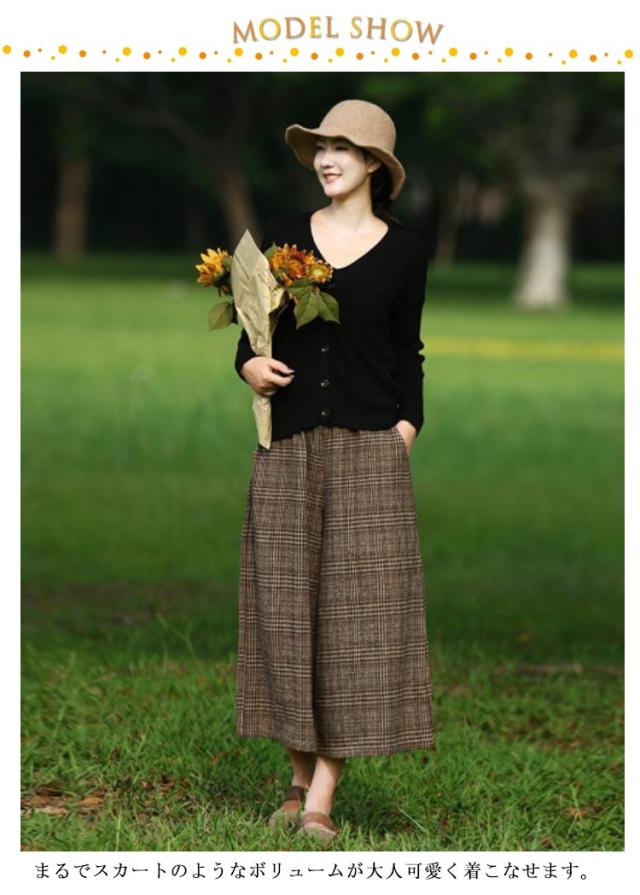 | レトロな雰囲気が溢れるグレンチェックガウチョパンツ。 まるでスカートのようなボリュームが大人可愛く着こなせます。 ふんわりAラインシルエットと絶妙な丈感、一番細い足首を見せ、細見え効果最強! 少し起毛した生地が季節ムートンを漂い、ほっこりあったか。 ウェストゴム&両サイドポケット付きで、楽チンで機能性も抜群。 | |