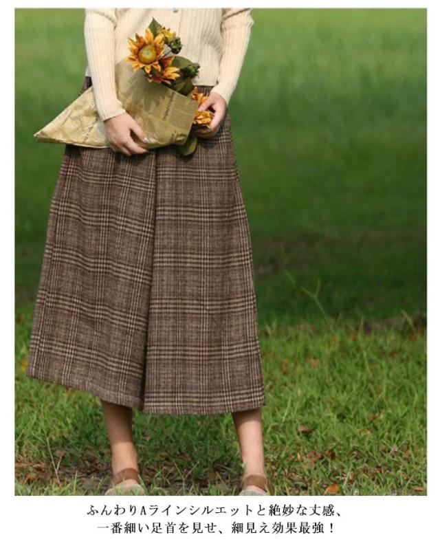 ガウチョパンツ ワイドパンツ レディース チェック ガウチョ フレア 秋コーデ 冬コーデ ゆったり ウェストゴム 9分丈 あったか 大きいサイズ ハイウエスト カジュアル オフィス お洒落 韓国ファッション