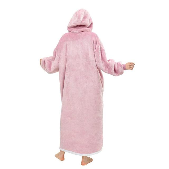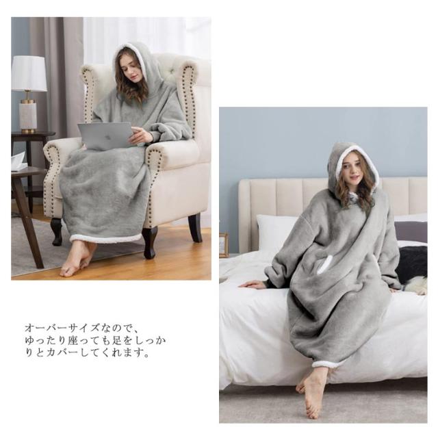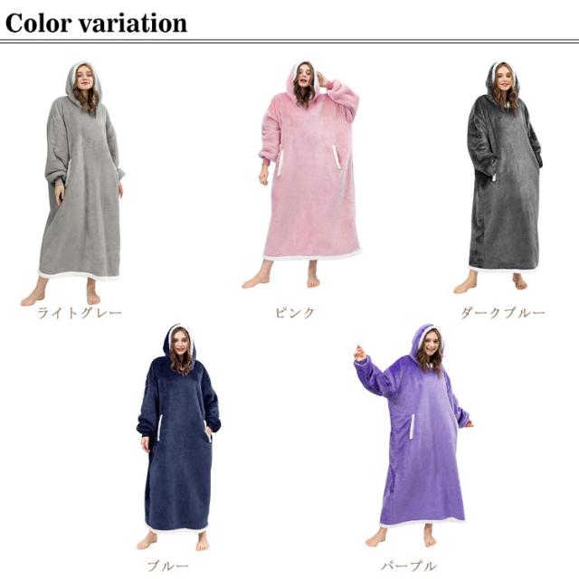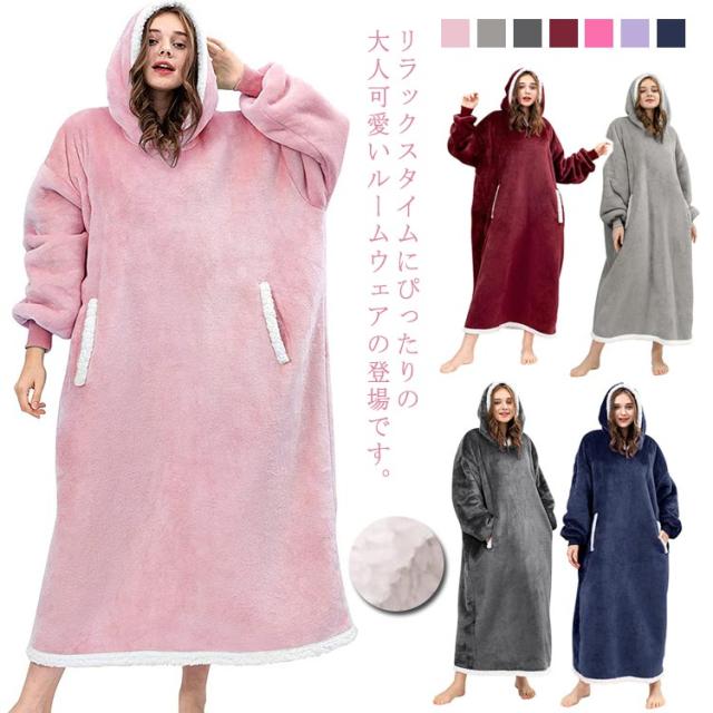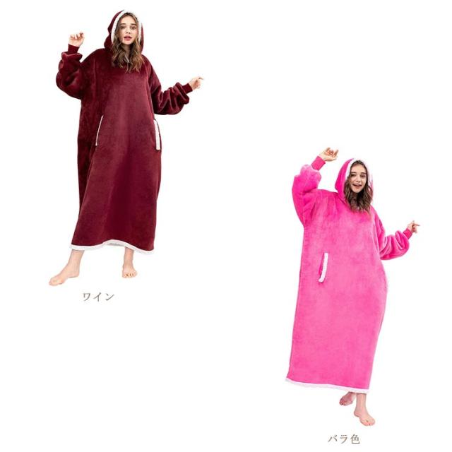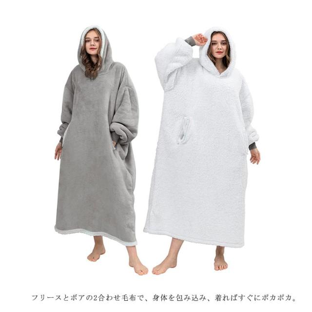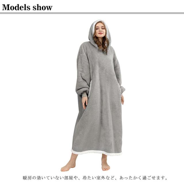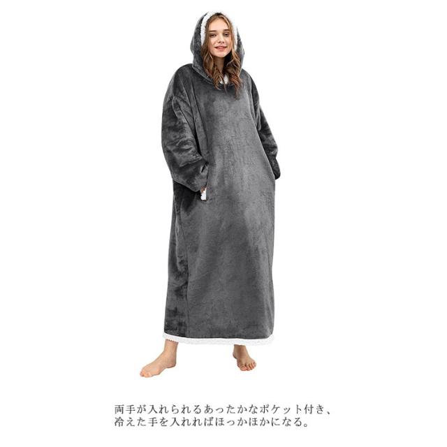 着る毛布 レディース ガウン ルームウェア フード付き ブランケット ロング丈 洗える 両面起毛 もこもこ パジャマ 秋冬場 防寒 保温 暖かい オーバーサイズ 極暖 送料無理