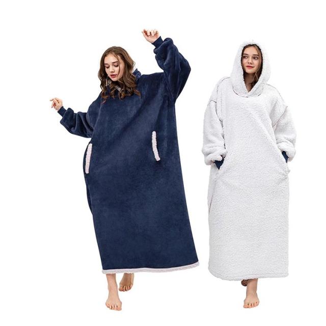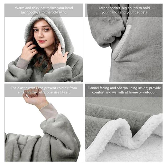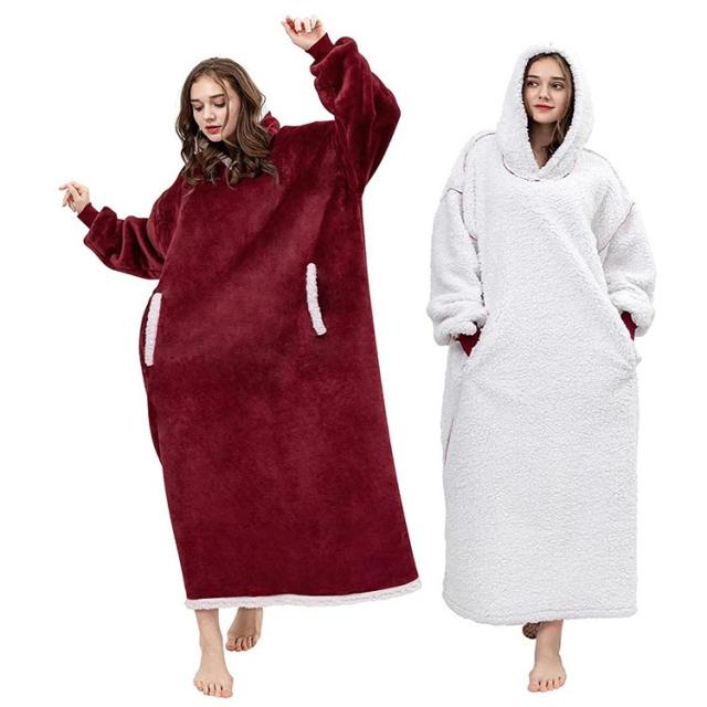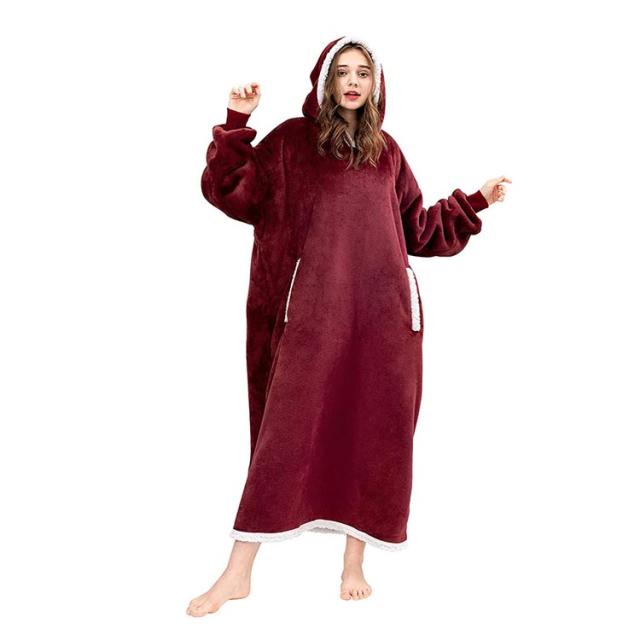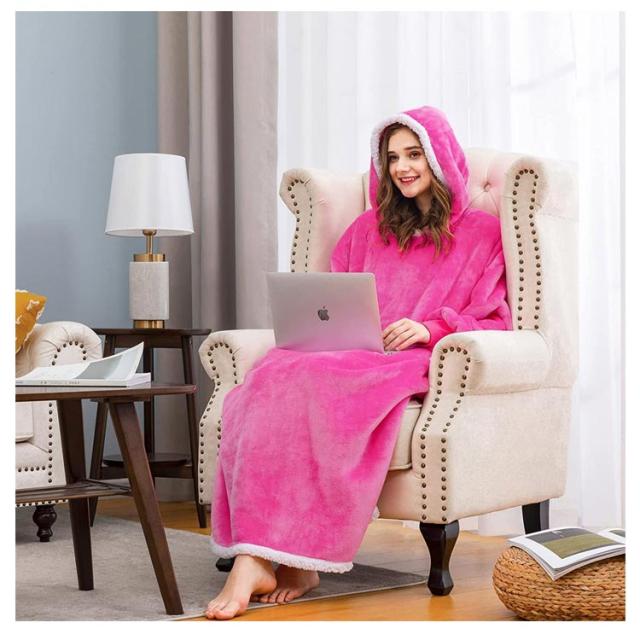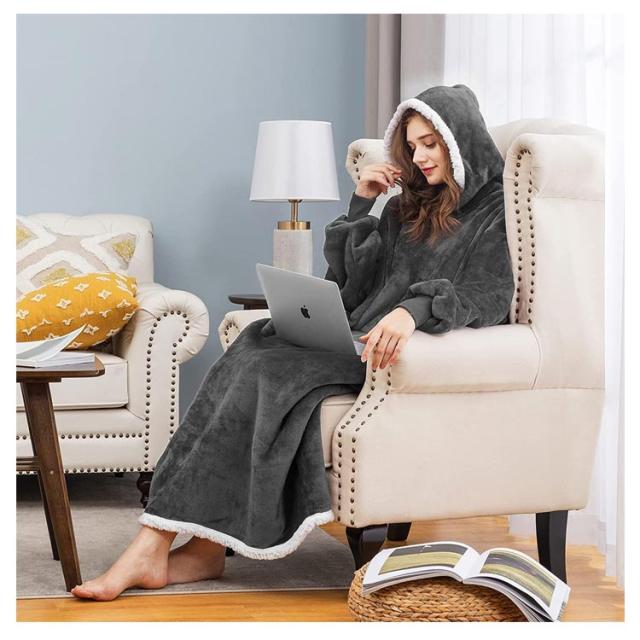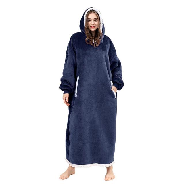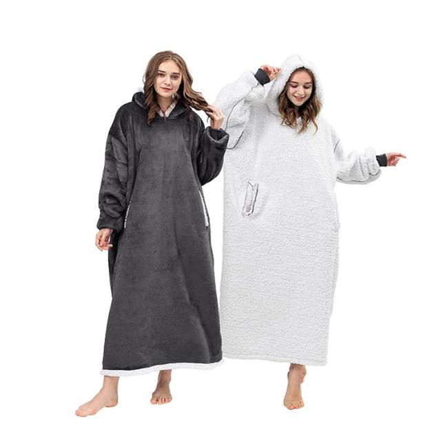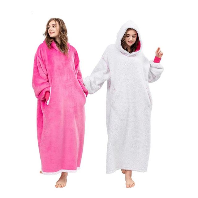 着る毛布 レディース ガウン ルームウェア フード付き ブランケット ロング丈 洗える 両面起毛 もこもこ パジャマ 秋冬場 防寒 保温 暖かい オーバーサイズ 極暖 送料無理