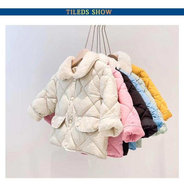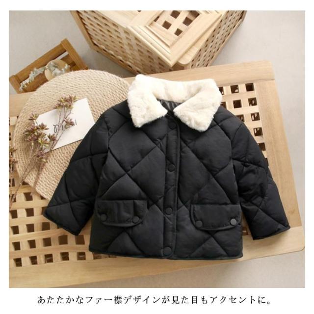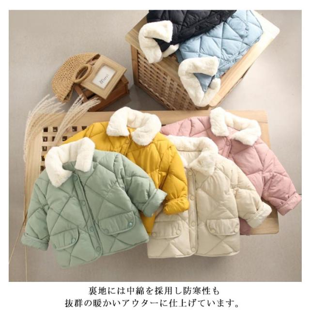 中綿ジャケット キッズ エコダウンジャケット 子供 キルティング ジャケット キルト アウター 子供服 男の子 女の子 中綿コート もこもこ 厚手 長袖 羽織り フードなし ファー 襟付き 秋 冬 カジュアル 防寒対策 保温 軽量 無地 秋 冬 小学生 通園 通学 90~140cm 送料無料