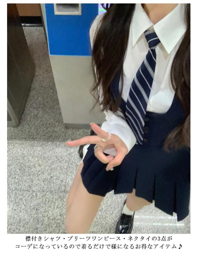 | シャツ・ジャンパースカート・ネクタイ3点セット。 襟付きシャツ・プリーツワンピース・ネクタイの3点がコーデになっているので着るだけで様になるお得なアイテム♪ 卒業式や入学式、発表会など、ハレの日に重宝すること間違いなしの一着です。 | |