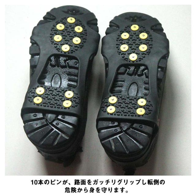 10本ピン スノースパイク アイススパイク 凍結 雪道用 靴底 靴 滑り止め 雪 靴底 雪道用 雪道 ゴム スパイク 子供 キッズ ジュニア レディース メンズ 20.5cm〜29cm 登山 シューズ 雪かき 除雪作業 雪対策 釣り