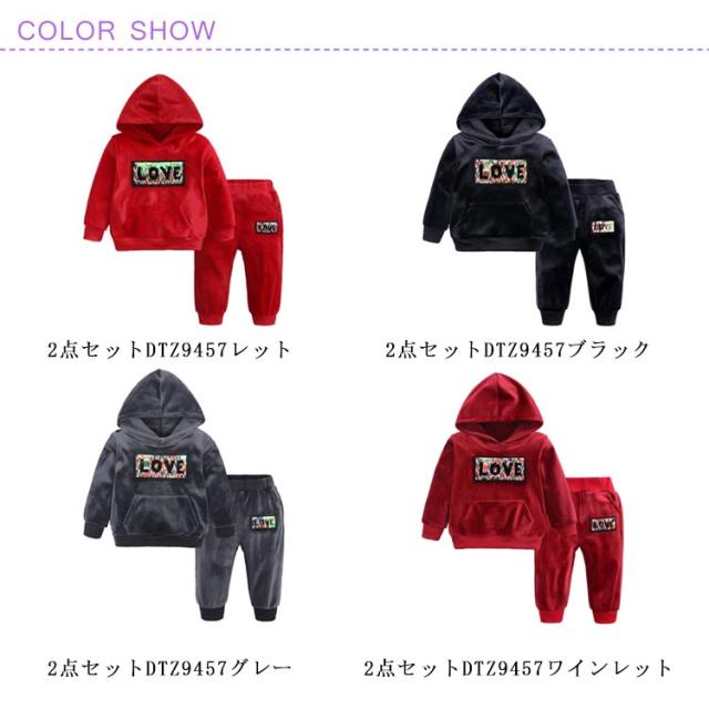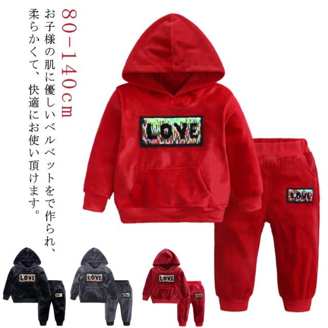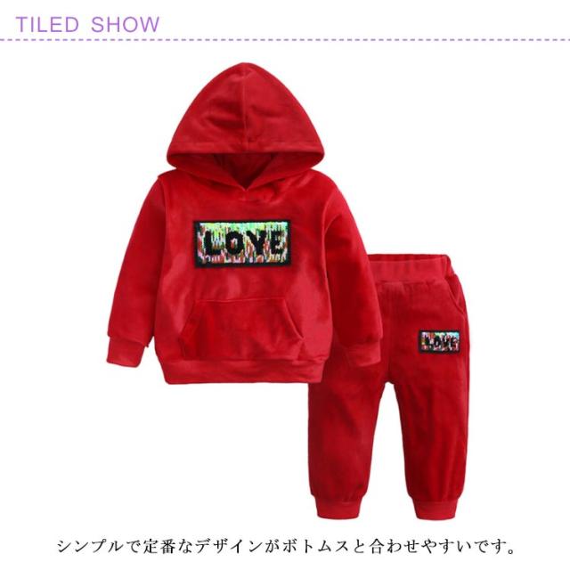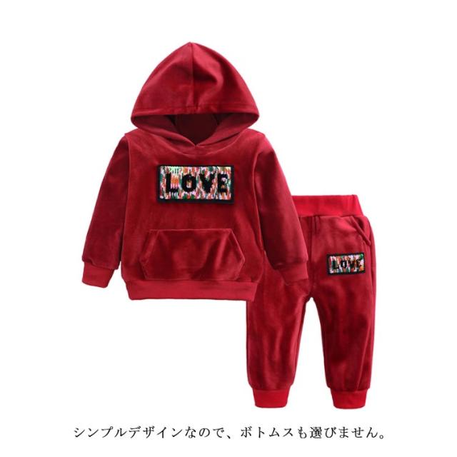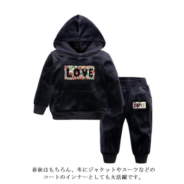キッズ トレーナー パーカー 上下セット 男の子 女の子 スエット スパンコール カジュアル ボーイズ 春 秋 冬 子ども服 こども服 フード付き トップス シンプル 80cm 90cm 100cm 110cm 120cm 130cm 140cm