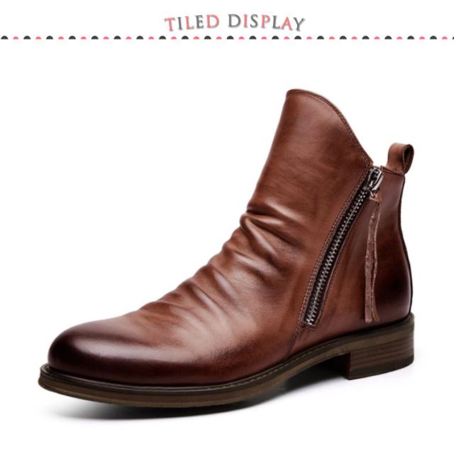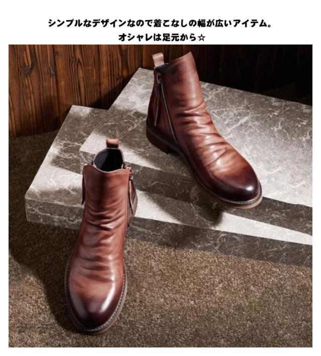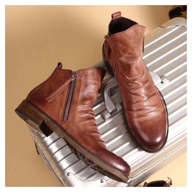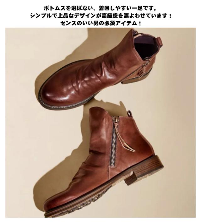 | 高級感溢れるヴィンテージ風ショートブーツ!時代に流されない洗練されたデザイン! シンプルなデザインなので着こなしの幅が広いアイテム。オシャレは足元から☆ ボトムスを選ばない、着回しやすい一足です。シンプルで上品なデザインが高級感を漂よわせています!センスのいい男の必須アイテム! | |