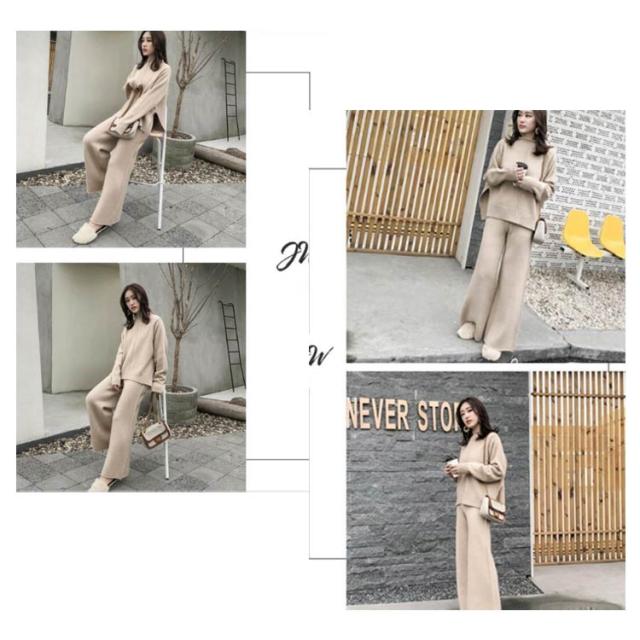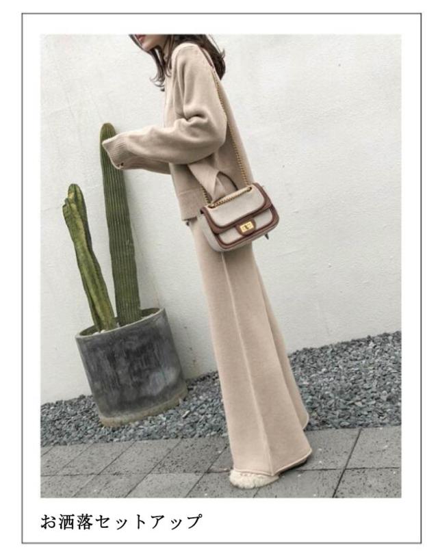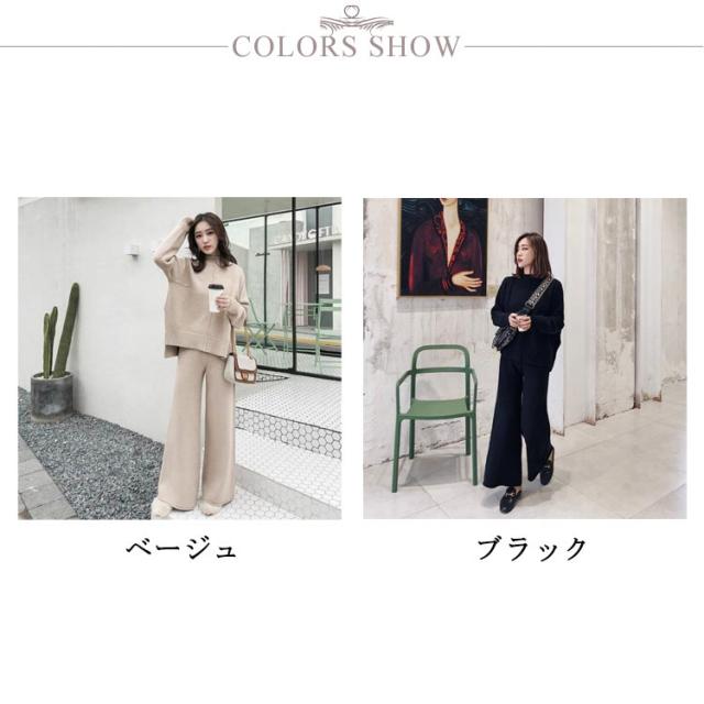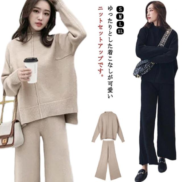 送料無料 セットアップ レディース 秋冬 セットアップ ニット ニットセーター プルオーバー ワイドパンツ ニット ニットセットアップ ニット 通勤 カジュアル 長袖 ゆったり 体型カバー サイドスリット 厚手 タートルネック 無地