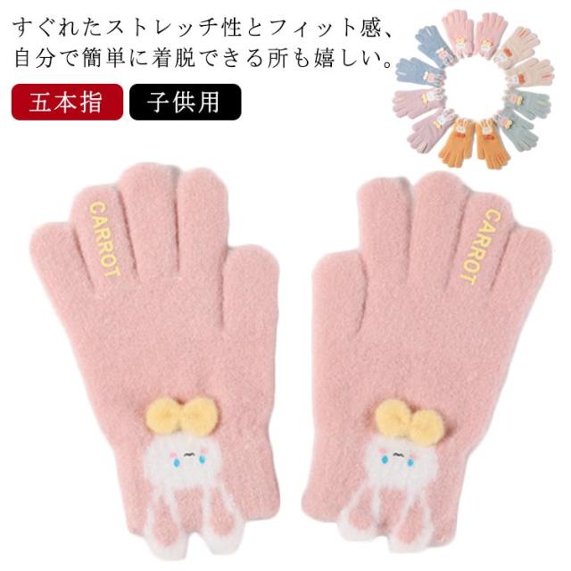 手袋 キッズ ニット こども 手袋 男の子 子供 ミトン ニット手袋 子供用 五本指 男の子 防寒 グローブ ふわふわ もこもこ アニマル 動物 兎 かわいい キュート おしゃれ 暖かい プレゼント ギフト 秋 冬 送料無料