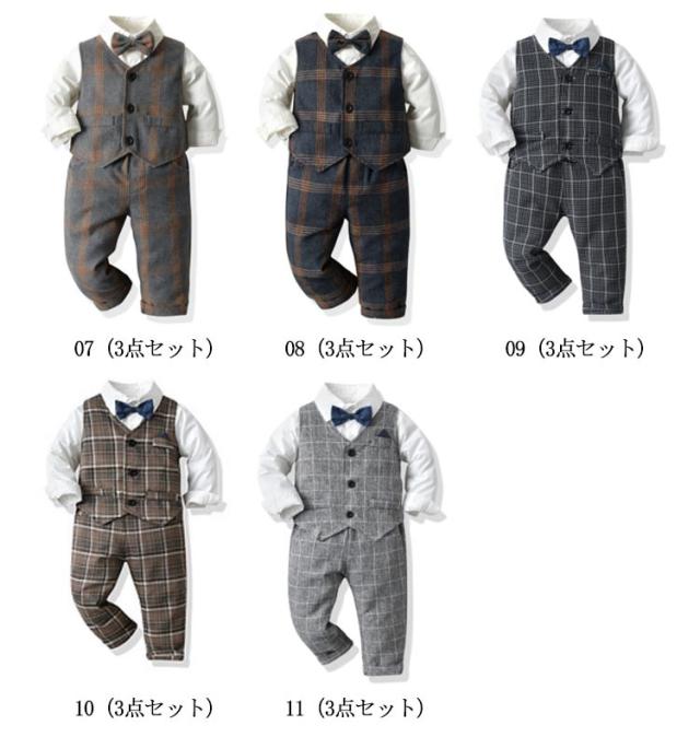 子供服 キッズ フォーマル スーツ ブレザー 男の子 ベビー服 3点セット 蝶ネクタイ付き シャツ/ベスト/パンツ 卒園式 入園式 七五三 お宮参り スーツ 無地 チェック柄 タキシード風 結婚式 ベビー スーツ 70 80 90 100 110 120 130 140