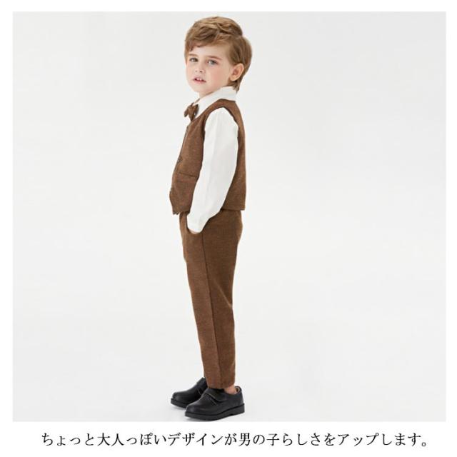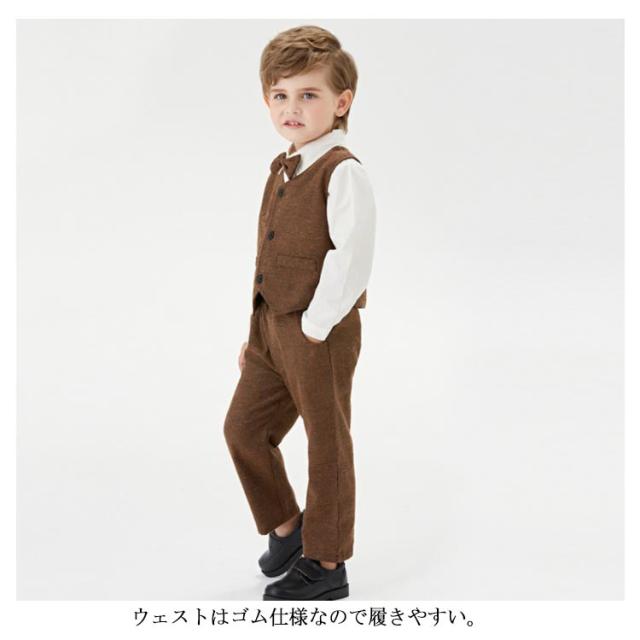 | セット内容:ベスト+シャツ(蝶ネクタイ付き)+ズボン。 蝶ネクタイがクールで、お食い初めや結婚式などのイベントにピッタリのフォーマルカバーオール! ウェストはゴム仕様なので履きやすい。 ちょっと大人っぽいデザインが男の子らしさをアップします。 正面からはちゃんとした大人の感じ、後ろ姿もかっこういい。 かっこいい男の子にぴったりのフォーマルスーツセットです。 結婚式や発表会、七五三などではフルセットでキメて、お出かけやパーティー、お食事会などにも最適! 家族写真、お食い初めなどの記念撮影にもインスタ映えもバッチリ。出産祝い、誕生日、お孫さんのプレゼントなどにも喜ばれます。 | |