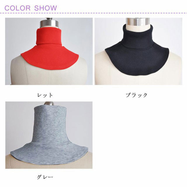 | 普段のトップスにプラスするだけでコーデの幅が広がる、 タートルネックタイプのつけ襟♪ おしゃれしながら首まわりの防寒にもなる、 寒い季節に嬉しいアイテムです 男女問わずにお使いいただけ、着ぶくれを気にせずレイヤードコーデを楽しめます。 | |