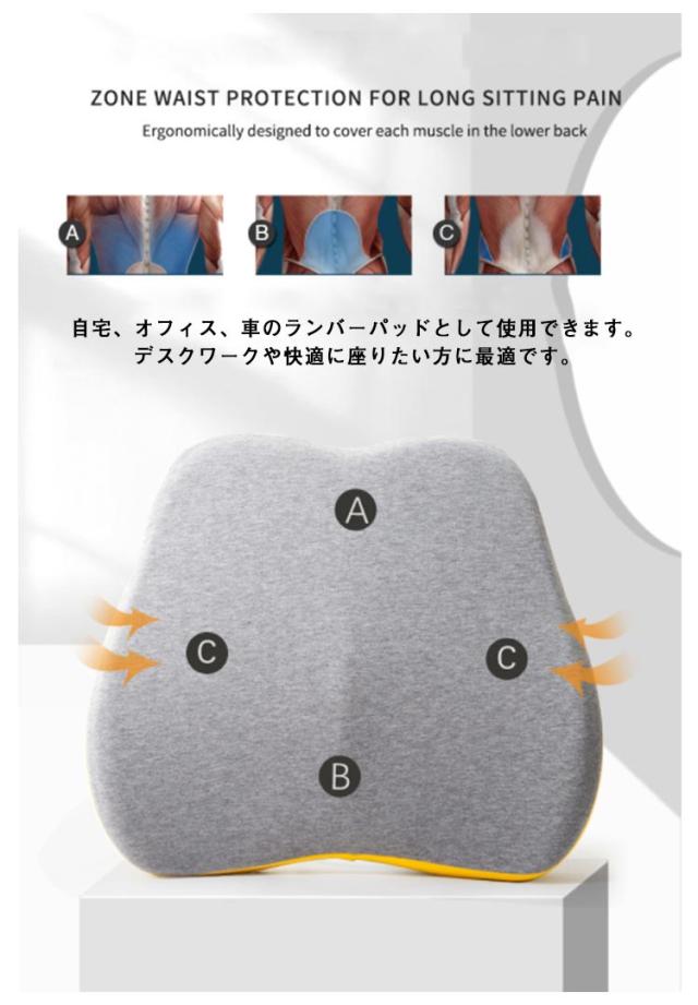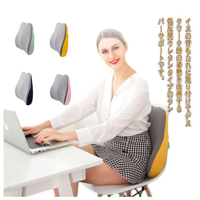 背もたれクッション ランバーサポート 背当てクッション 腰枕 腰クッション 腰用クッション 低反発ウレタンフォーム 低反発クッション 背中 椅子 イス オフィス オフィスチェア 取付簡単 カバー洗える 無地 全4色