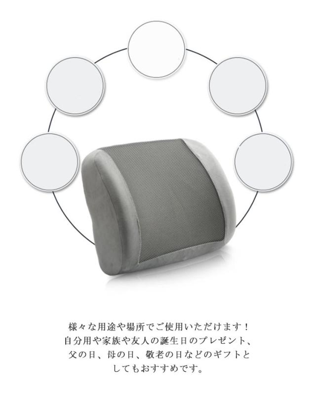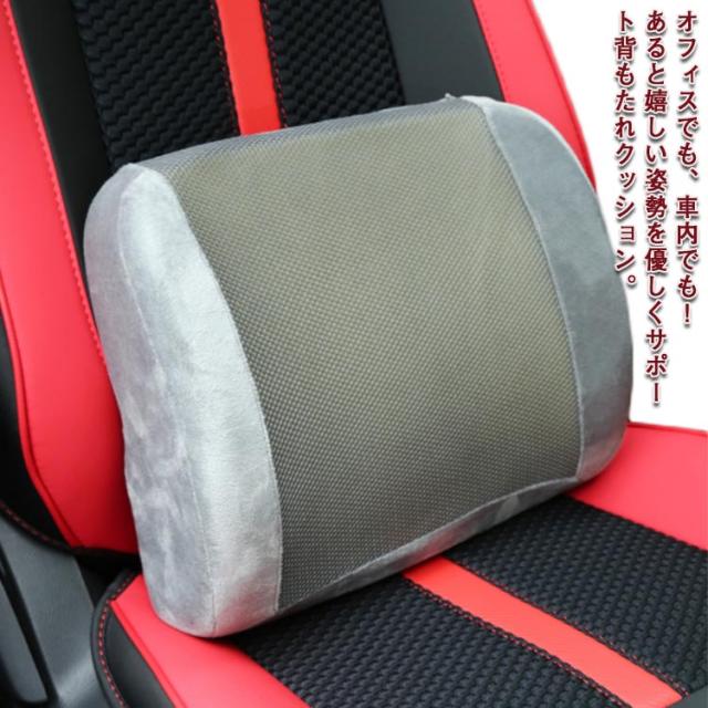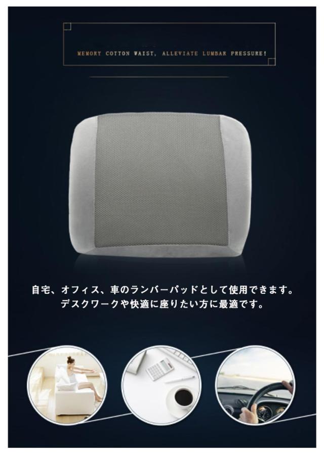 背もたれクッション ランバーサポート 背当てクッション 腰枕 腰クッション 腰用クッション 低反発クッション 低反発ウレタンフォーム 背中 椅子 イス オフィス オフィスチェア 取付簡単 無地 グレー