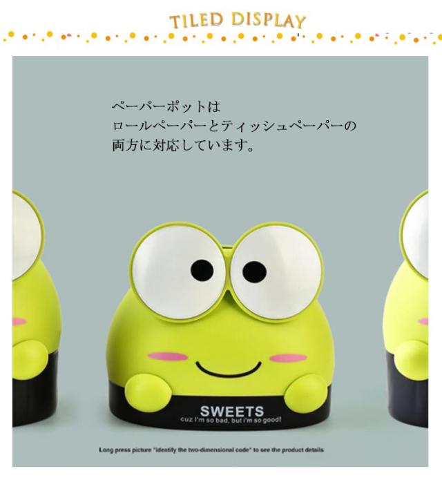 | かわいいアニマル型のペーパーポット。【カエル型、クマ型、ブタ型、ニワトリ型、ネズミ型】 ペーパーポットはロールペーパーとティッシュペーパーの両方に対応しています。 フタをあけて中に入れ込むだけだから使用もとっても簡単です。 ロールペーパー・ティッシュペーパーなど水にぬれると後片付けが大変ですが、樹脂製なので、水回りの場所にもご使用いただけます。 ティッシュケースと思えない形で生活感を消すことが出来ます。形もカラーも豊富でインテリアにあった色のコロンとしたティッシュケースをぜひ、お楽しみください。 可愛いアニマルが毎日の日常に華やかさを演出してくれますよ? | |