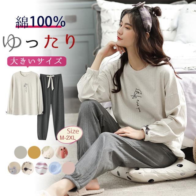 綿100% パジャマ レディース ゆったり 大きいサイズ パジャマ オーガニックコットン 上下セット 長袖 冬 冬 パジャマ 長袖 ルームウェア 部屋着 寝巻き 冬