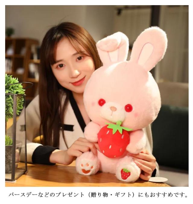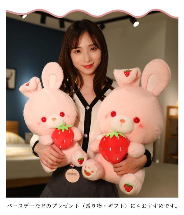 | 2サイズ選べる!手触りやわらかで癒されるいちごのウサギぬいぐるみ ふわふわ で触り心地も良くて、思わずぎゅ〜って抱きつきたくなっちゃう。 お子様(子供)から大人まで愛される、 キュートなウサギのぬいぐるみです。 バースデーなどのプレゼント(贈り物・ギフト)にもおすすめです。 | |