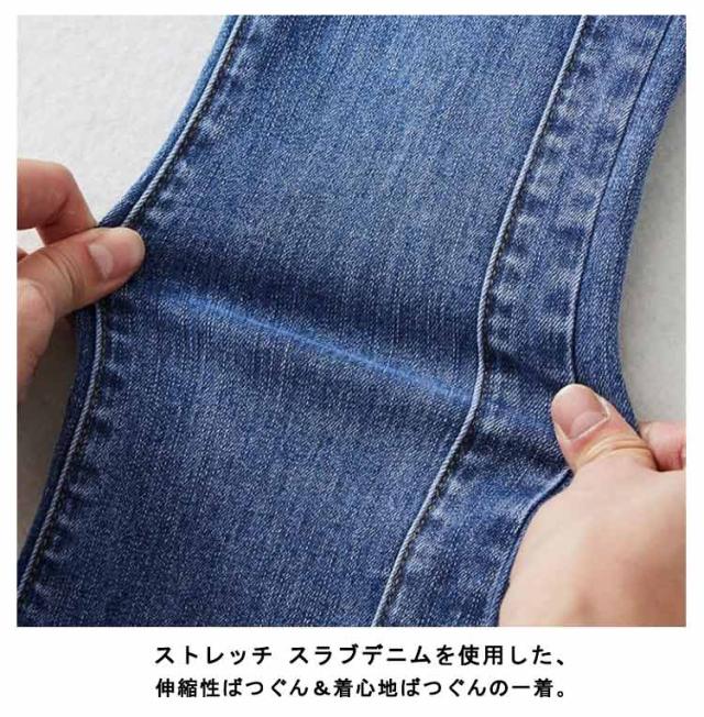| カジュアルにもキレイめにも使いえるスリットデニムパンツ。 ストレッチ スラブデニムを使用した、伸縮性ばつぐん&着心地ばつぐんの一着。 フロントスリットからの足首チラ見せで、脚がすっきりした印象に。 さらに、トレンドのフレアシルエットで脚長・美脚効果も◎ ヴィンテージライクなデニム加工で、こなれた雰囲気を演出します。 ハイウエストだからコンパクトなトップスとも合わせやすく、美脚効果抜群な一本。 | |