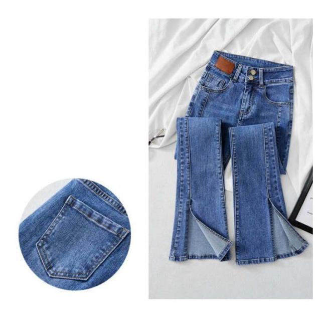 伸び伸び美脚♪ スリットデニムパンツ デニムパンツ レディース Gパン デニム ロングパンツ 裾スリット ハイウエスト ジーンズ ストレッチ カジュアル きれいめ 大人 大人可愛い コーデ おしゃれ 可愛い かわいい 送料無料