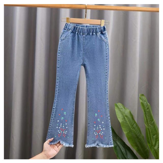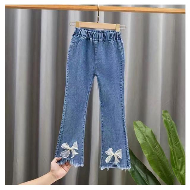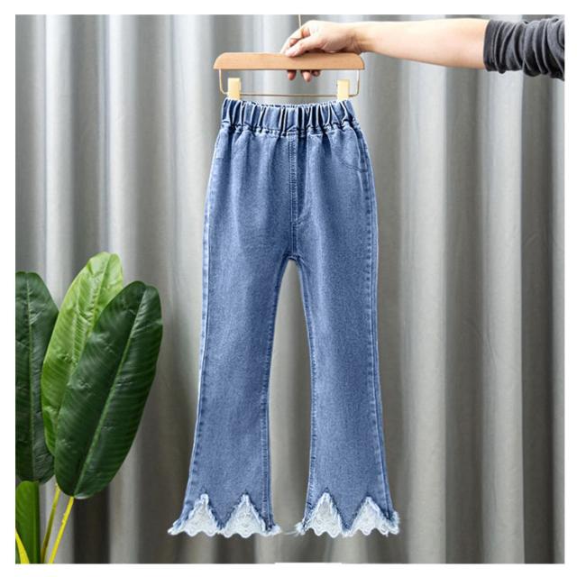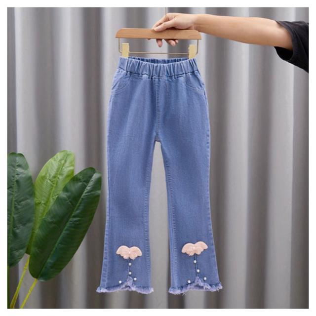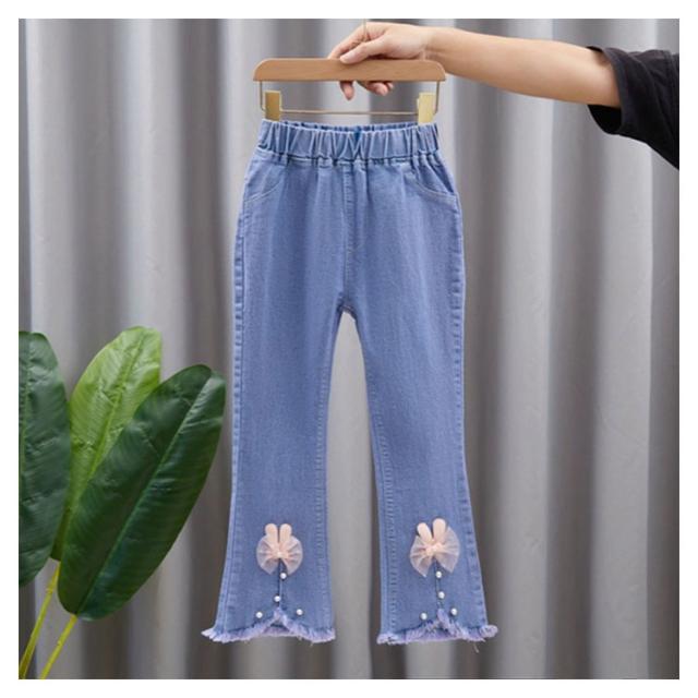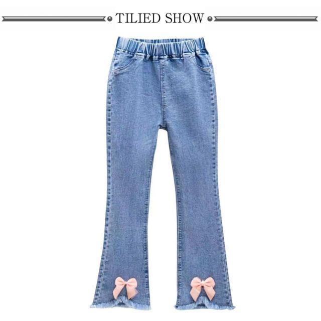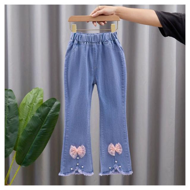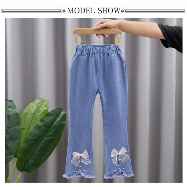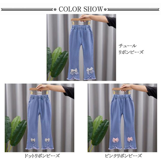 子供服 デニムパンツ フレアパンツ 女の子 ウェストゴム ストレッチ 裾カットオフデザイン バックポケット キッズ 女児 カジュアル 通園 通学 春 秋 全11柄